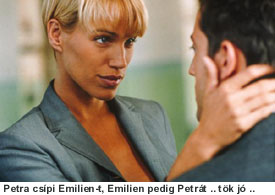 Egyik ízben például a nálánál kicsikét nagyobb, legalább is magasabb Emma Sjöberg-gel, Petrával együtt játsszák azt, hogy három komoly szamurájt karatéznak le. Ennek a jelenetnek mindketten egyformán aktív és aranyos résztvevői, ám mégis minden szem Petrára tapad, hiszen amikor pár órája a toalettből elrabolták, a bugyija nem volt rajta, így most valahányszor cigánykereket hányt (ami nélkül karatéban nincs élet), állandóan a csupasz feneke villant ki, legalább is ez lett volna a sportszerű. A harc elején viszont egyből kibukkant egy fehér tanga, ami mégiscsak hogy kerül oda, később hiába próbáltak szépíteni valami feltehetően testszínű darabbal, odalett a varázs, de persze mindezt csak a humor kedvéért mondjuk.
