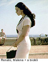 furcsa felépítésű lakások, és mindenekelőtt a gazdag gesztikulációval előadott jelenetek. Jó, ha látható egy bicikli is, az szerencsét hoz, hiszen az egész világ és az egész Egyesült Államok a Biciklitolvajok c. filmet ismeri egyedül, ha régi olasz filmről van szó. Ahogyan a méhecskék is konkrétan egy-egy szagmolekula miatt választanak egy virágot leszállópályául, a mozinézők is komponens-érzékenyek, és könnyen lehet, hogy egy biciklis felvétel, ha megjelenik a film trailerében, aranyat ér majd a jegyeladásnál. De lényeg a lényeg, a film úgy kezdődik, hogy ez az a nap, amikor Mussolini hadat üzent a szövetségeseknek, és a férfihang hozzáteszi, ezen a napon kapott egy új biciklit. Az ekkor még kissrác neve Renato, és a film teljes hosszát végig fogja biciklizni, hogy az olasz filmélményünk teljes legyen. Néha váltós biciklit látunk, néha váltó nélkülit, de ne izguljunk, ez csak a filmes stáb hibája. A forgatókönyvíró fantáziája azonban elképeszt minket, rögtön itt, a történet legelején. Eddig ugyanis két dolgot dobott fel a vászonra, a negyvenes éveket, meg hogy a kiscsávó kap egy biciklit, de az olasz zsánerképekben gondolkodó agya még egy bravúrral megtoldotta rögtön, és azt találta ki, hogy a srác csatlakozik egy biciklis bandához, akik azzal szórakoznak, hogy egy Malena nevű nőt követnek. Ez aztán a történet! 100% Italiano, a külföldiek (mi is azok vagyunk) kajálni fogják, utána pedig beülnek egy olasz étterembe. A tizedik percben már érezni is lehet, hogy ezt