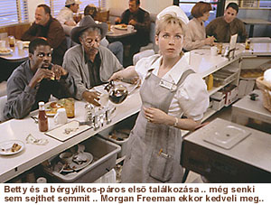 Közben a lúzer férj hazajön a két megrendelőjével, akik nem mások, mint a Morgan Freeman - Chris Rock páros, és akik bizony brutálisan meggyilkolják a férjet. Chris Rock, csak hogy a leendő nézők étvágya még jobban felgerjedjen, megskalpolja a férfit. Betty pedig ennek a jelenetnek pont a szemtanúja, és emiatt "esik bele a sorozatba".