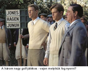 Látunk egy újságcikkekből kivágott, azokkal illusztrált golf-legendát, Matt Damon-t, aki nagyon sikeres volt. A narrátor hangját halljuk, és közben ezeket az újságcikk képeket látjuk. Tök jó. Új Oldal.