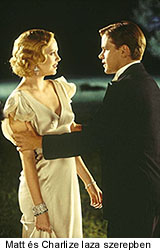 Az első jó dolog most következik be a filmben, Charlize Theron-t ugyanis megtámadják ilyen dagadt bankárok, hogy adja el nekik a golfpályát, meg mindent. De ezt a nőt nem akármilyen fából faragták. Azt, hogy konkrétan milyenből, az egész filmsorán nem igazán fog kiderülni, mert ebben a filmben mindenki mellékszereplő, senkinek nem kellett bonyolult karaktereket és történeteket kidolgoznia. Matt Damon is csak arcból játszik, a szokásos csodagyerek arcát nyomja, de az, hogy érez-e, gondol-e, tervez-e, tud-e valamit, az örök rejtély marad. Szóval nem akármilyen kliséből faragták ezt a nőt, és nem adja el a golfkomplexumot. De hogy, de hogy, de hogy???