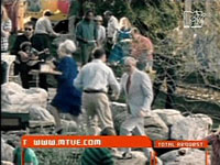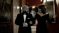 Ha már itt tartunk, érdemes elidőzni a parti résztvevőin, mint egy Agatha Christie-filmben. Rögtön az első sorban, a képernyő jobb alsó sarkában Michael Stipe táncol, egy nyilván direkt erre a klipre kifejlesztett stílusban, ugyanis úgy néz ki, mintha oda-vissza játszanák le a mozdulatait. Tőle balra egy kis szülinapi ünnepség, tortával, persze a tortát elfújó kislány, meg az asztal körül ülő emberek teljesen külön térben vannak. Kis asztalbeszélgetés is folyik, és (ez a legjobb!) amikor megfigyeljük a szereplők száját, kiderül, hogy a számot éneklik. Ezt az effektet egyébként elsők között, ha nem egyenesen elsőként az R.E.M. alkalmazta, a Man On The Moon c. klipben. Szóval, vagy oda-vissza tekergetik a mozaik-kép részfelvételeit, vagy éppen a szöveget éneklik, nagyon komoly. Visszatérve a népes társság leírásához, van, aki jobb-középen beleesik a medencébe, de mindjárt utána ki is esik belőle (visszatekerik). Talán éppen az ő szerepe hivatott felhívni a néző figyelmét, hogy itt komoly cselek vannak a háttérben, és hogy például úgy tekernek vissza egy részjelenetet, hogy az egész attól még továbbra is előrefelé halad.