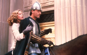 Thibault-ék Chicagoban kötnek ki, és hamar belebotlanak egy családi sarjba egy gyönyörű lány személyében, akit a filmben Julia Malfete-nek, az életben pedig Christina Applegate-nek hívnak. Christina Applegate személye nagyon feldobja a filmet, mert megnyerően és humorosan tudja eljátszani mind Rosalind-ot, a lovag középkori jegyesét, mind Juliát, a mai fiatal örökösnőt, amellett egy olyan jó stílust kevert ki magának a filmben, ami leginkább a Jóbarátok Rachelének - vagyis Jennifer Anistonnak- a modorára emlékeztető, tehát abszolút vicces és finom. A 30 éves színésznőt eddig leginkább vígjátékokban láthattuk (Támad A Mars, Mafia!), de ő volt Kelly Bundy, a Rém Rendes Család c. sorozat tinilánya is.