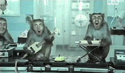 Aztán betessékelik a barátunkat egy nylon boxba, és elkezdődik a kísérlet. Zenélő majmok ugranak elő, emberünk csak néz, a nővér a háttérben szintetizátorozik. A Szintetizátorról jut eszünkbe, ezek nem sima majmok, amit itt látunk, az egy szintézis, majmok, emberi arccal. Majmok, az együttes tagjainak az arcával. Nagy-gyon súlyos.