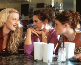 bármilyen humor megengedett (lásd a Pitéket, amelyek néha súrolták a kedvelhetőség határát), a Csajok nagyon visszafogott a primitívebbeknek számító viccek, gegek terén, ami persze annak is köszönhető, hogy ezúttal lányok szemével látjuk a világot, ami mégiscsak más. A csaj-szempont felvétele nagyon jó ötlet volt a forgatókönyvíróktól, a 27 éves Maggie Peren-től és Christian Zübert nevű haverjától.