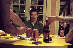 képességeiről is jó emlékeink voltak (Gattaca, Szép Remények, Newton Fiúk), mégis kellemesen meglepett minket az átgondolt alakításával. A film első perceiben egy izgulós és megfelelni vágyó fiúnak látjuk, aki jó adottságaival egyenes úton jutott el a filmbeli napig, amikor azonban hirtelen teljesen újszerű elvárásoknak kell megfelelnie. Hawke -a forgatókönyvnek megfelelő ritmusban - finoman bontogatja ki Hoyt szárnyait, és miközben folyamatosan érezteti velünk, hogy a karakterében több van, mint amit első látásra gondolnánk róla, ügyesen táncol az Alonzo-féle "őrület határán". Még egy színészi munkát mindenképp dicsérnünk kell, és ez a Roger-t játszó Scott Glenn műve. A 60 éves amerikai színészt legutóbb a Vertikal Limit (Jég és Föld Között) apa-szerepében láthattuk, sajnos, csak pár percre, de most már több időt is vele tölthettünk, és ez ugyancsak emlékezetes volt. Rogerként néhány mondattal és egy pár gesztussal egy egész életet be tudott mutatni, annyira pontosan, hogy az elképesztő.
