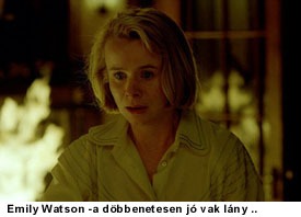 elnyomott, sőt bántalmazott emberből zavart, de kisportolt fickó vált. Az érzelmileg laposra vert kiscsávó felnőtt korában igenis képes az érzelmekre, lásd, amikor megismerkedik egy vak lánnyal, tényleg szerelmes lesz belé, és küzdeni is fog érte, a saját őrületével szemben. Ez jó pont. A vak lányt mellesleg kedvencünk, Emily Watson alakítja, és döbbenetesen jól. Mármint technikailag, a vakságot nagyon profin adja elő, egyszerűen elhisszük neki, hogy tényleg nem lát, sőt, a vakokra jellemző érzelmi mélység is roppant mód intenzíven jelenül meg az alakításában. Elhisszük neki, hogy végtelenül zárkózott, ám mégis teljesen barátságos és felszabadult a férfi társaságában. További nyeresége még a karakterének, hogy vakként folyton a
