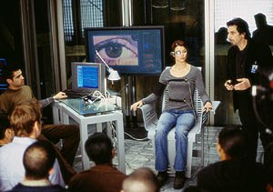 meg vele, hogy mi az ábra. Talán ennyiből is látszik, mennyire kitűnő sztorival dolgozik a film, és hálistennek ezt a kitűnő anyagot mesterien bontja ki, a film összes részlete első osztályúan van megalkotva. Ez a film mindennek a tetejébe egy kicsi, de régi álmunkat is teljesítette, a Hálózat Csapdája óta zavar minket, hogy az internetes kapcsolódást folyton úgy mutatják be, mint a karikacsapást, soha nem következik be semmilyen zavar, szemben a valósággal, ahol gyakran eléggé kellemetlen problémák tudnak adódni. Ez a film a lehető legjobb helyen szakít ezzel az eufórikus hagyománnyal, s mindjárt két legyet is üt egy csapásra, mert közben egy másik alapklisét is kicselez, amire a film eleje után nyugodtan mérget vett volna a rutinos néző (többet nem mondhatunk).