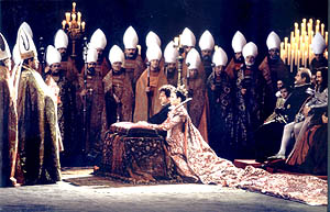 szenderíteni ez a film, ami persze furcsa, mert hogy lehet viharban, tengeren aludni? Lényeg, hogy a belépő annyi, hogy a nézőnek ne legyen komoly kosztüm-fóbiája, és innentől minden sínen van. A döbbenetes hatást a nézők úgy érzékelik, hogy a film, illetve a filmben szereplő alakok megérintik őket, ott vannak előttük a vásznon, hús-vér alakban, giccses fények, belógó mikrofonok, műanyag ruhák, szétcsépelt klisék nélkül, teljes komor történelmi valóságukban. Az ember valahogy mindig is tudta, érezte, hogy a történelem nem az, aminek látszik. Vagyis, amit mi történelem gyanánt ismerünk, az nem más, mint egy kivilágított akvárium, melyet alulról bámulunk, és látjuk, ahogyan a cápák ott úszkálnak benne. A történelmi valóság ehhez képest egészen más, nincs kivilágítva, a cápák a sötét, komor homokos vízben élet és halál urai, és minket semmi sem véd meg tőlük, nincs semmiféle üvegfal.