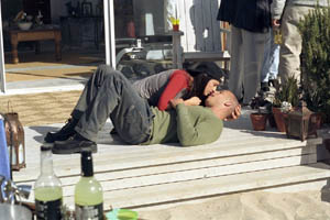teraszán salsát táncol a naplementében a feleségével, mi itt, a filmvászon túloldalán már tudjuk, hogy sok jóra nem számíthatunk. (Ha egy akciófilm elején nagyon erőteljes családi idillt látunk, vagy egy fiatal feleség igazán édesnek és kedvesnek van beállítva, egyfajta akciófilmes törvény szerint tartanunk kell a következő jelenetben való elvesztésétől).