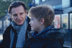 Ilyen erősebb szál még a Liam Neeson-vonal, vagyis pontosabban az ő 8 éves mostohafiáé, akinek nemrég halt meg az édesanyja, és aki a gyász mellett azért is van kikészülve, mert odavan az egyik iskolatársnőjéért. A srác (Sam/ Thomas Sangster) zsenge kora ellenére teljesen tisztában van a szerelmi gyötrődés természetével, nagyon meggyőzően ecseteli az apjának és nekünk, mennyire komoly dolog is a szerelem. Ez a kissrác-vonal leginkább megható, főként, mivel Liam Neeson nagyon szimpatikusan tud a háttérben maradni, ha szükséges.
