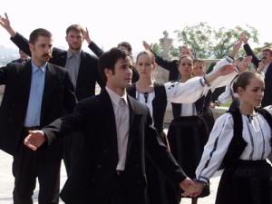 Néptáncosok a Budai Várban, füstgépek, géppisztolyok, lövöldözések, légi felvételek, darvak, illetve daruk, vagyis mindaz, ami a filmes fény és pompa eszköze, kelléke volt mindig is Jancsó Miklósnál. Így a film első harmadában feltétlenül az a gondolat fogalmazódik meg a nézőben, hogy "Jancsó Miklós visszatért".