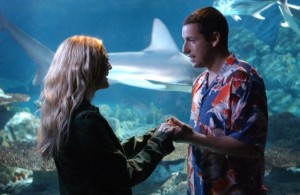 jelenetet láthattunk Sandler és Barrymore között, mint a jól bevált idióta Sandler-féle helyzetkomikumokat.