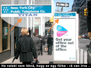 1999 óta működnek telefonfülke reklámok. New Yorkban 71 telefontársaság működtet nyilvános fülkéket, és mindegyik fülkéin vannak reklámhelyek. A reklámhely szolgáltatást természetesen a telefontáraságoktól független outdoor media cégek végzik - gyakorlatilag pont úgy, mint nálunk. És még azt sem mondhatjuk, hogy a Matáv fülkéin a reklámfelületek a New Yorkiakhoz képest rondák lennének, sőt. Nagyobbak, szebbek, ráadásul a legmodernebb kivilágított és gördülő rendszerűek (az egyes reklámokat gördülő rendszer segítségével cirkulálják). Illetve, ha nem az iker fülkék oldalára tapasztott "franciaágy" jellegű hirdetési helyről beszélünk, hanem a másik Matáv-Mediacontact megoldásról, a fülkeajtókra tapasztott féligáteresztő egy-egy plexi betétet teljesen lefedő matricákról, akkor pedig azt mondhatjuk el, hogy gyakorlatilag szolidabbak, mint New York-i társaik.