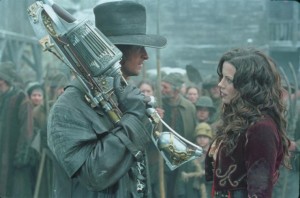 ahol Drakulával kell leszámolnia - mint egy rendes szellemirtónak. Már az első jelenet nagyon kedves, amikor az erdélyi kisváros főtere felett vámpírok röpködnek, és velük kell harcolniuk a helyieknek, ásóval, kapával, nagy haranggal, meg ami éppen kézre esik. Van Helsing persze egyből menő csávó lesz a nyíl-golyószórójával, a lány (Kate Backinsale) érdeklődését egyből fel is kelti.