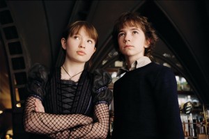 (a Klaust alakító Liam Aiken még csak 15 éves, és eddig láthattuk már az Édesek és Mostohákban, az Édes Novemberben, vagy a Kárhozat Útjában is, és mindegyikben remek volt), a nagylánynak, Violet/Emily Browning-nak jól áll, ahogy minden mentőakció előtt felköti a haját, a szó mindkét értelmében, és a legkisebbik Baudelaire-csemetével kapcsolatban is jól működik, hogy egy csak a testvérei számára érthető nyelven beszél (az örökös foghasználata már kevésbé eredeti ötlet).