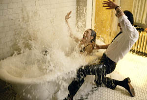 A film igazi fordulópontja az, amikor a gyönyörű Rachel Weisz (akivel Keanu a Láncreakcióban is együtt szerepelt) és Keanu betoppannak egy templomba, hogy beszéljenek egy atyával. A jelenet kezdetben semmi különös, aztán az egyik személy (a nagyszerű és szép Tilda Swinton) meglebbenti a szárnyait. Hoppá, ő Gábriel arkangyal. Nézői szívünk kezd feldobódni. Aztán Keanu elkezd panaszkodni, hogy a Teremtő miért akarja az ő halálát, miért kell meghalnia, amire Gábriel azt mondja, basszus, X- éves