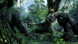 ami pedig azért kínos, mert a dínók szemlátomást erősebbek, különösen így hárman együtt, falkában támadva. Valahányszor beleharapnak Kong karjába, látszik, hogy ez a matt előtti sakk, innen egyrészt nincs menekvés, másrészt a további 2 harcos ősgyík másodperceken belül ugyanígy lecsaphat. Kong végül mindig megmenekül e halálos helyzetből, de ez egyre kevésbé hihető. Később, amikor egy ízben denevérek támadják meg, akik ugyancsak nagyra nőttek, de korántsem tűnnek veszélyesnek, Kong annyira sarokba szorul, hogy felvetődik bennünk a gyanú, hogy King Kong a hazájában nemhogy nem a dzsungel királya (innen jön a King előnév), de éppenséggel a tápláléklánc legalján tengeti életét.