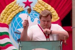 Hogy egyetlen percre se maradjunk gusztustalanság, morbid sokkolás nélkül, a kisbabának sertés farka nőtt, amit egy harapófogóval vág le az apja. A következő jelenetben undorító zabáló versenyt látunk, egy fantázia ez, ami az egykori kommunizmusban játszódik, aminek nem igazán örülünk, mert miért poénkodik valaki a történelemmel? Ha csak videóklipet akar rendezni, hát rendicsek, legfeljebb béna lesz, de szatíra formájában feldolgozni egy kommunista diktatúrát, 2006-ban nagyon gyenge dolog. Mindegy, nagyban megy a zabáló verseny és a sugárban hányás. A film hátralévő részében folytatódik az ocsmány, gusztustalan dolgok sorozata, amely csak említésképpen magában foglal egy ember feldarabolását, beleinek kifordulását, saját kezének, fejének levágását, saját testének összevarrását, saját fejének levágását. Csúcs. Döbbenet. Ez lett Pálfi Györgyből, a Hukkle rendezőjéből? Örömmel és izgatottan siettem e fim vetítésére. Rossz belegondolni. Ráadásul az ember saját magát égeti, valahányszor beszédbe elegyedik valakivel erről a "filmről", mert jelzed, hogy nagyon súlyos, ocsmány, gusztustalan film, illetve nem is film, hanem csak másfél óra, ami tele van ocsmányságokkal. És utána megkérdik, hogy "például ...", és itt jön az égés része a dolognak. Jobb kikerülni az egészet, vagy csak azokkal szót váltani róla, akik ugyancsak látták, és mint a post-traumatikus veterántársainkkal, akikkel szavak nélkül értjük egymást, jól el lehet velük kommunikálgatni.