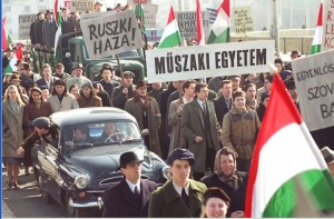 A legsúlyosabb egyébként mind között az, ahogyan a tömeg kitalálja azt a követelést, hogy a ruszkik menjenek haza. Az egy darab hangadó a következőt kérdezi magától, hogy "tényleg, miért ne mehetnének haza a ruszkik?", a tömeg felkapja a szlogent, és másodperceken belül már együtt skandálják, hogy "ruszkik haza!". Ez, ha belegondolunk, a magyarok értelmi szintjének durva degradálása, azt állítani bármilyen szinten, hogy csak úgy valakiben felvetődött, hogy miért ne (ez is ostoba amerikai stílus), miért ne mehetnének haza? Miközben a felszabadulás elnevezésű otromba átveréssel bő tíz éve megszállva tartották hazánkat, és évek óta dúlt a Rákosi terror is. Ezek után egy spontán felvetésnek beállítani egy ezer sebből vérző nép egységes akaratát, hogy a szovjet csapatok takarodjanak, nagyfokú cinizmus. Legjobb tudomásunk szerint az 56-os forradalom pont azért vált forradalommá, mert ez az egyszerű gondolat, ez az igény, ez az akarat mindenki fejébe bele volt égve, hogy a ruszkik (értsd a megszálló kommunista szovjet csapatok) takarodjanak.
