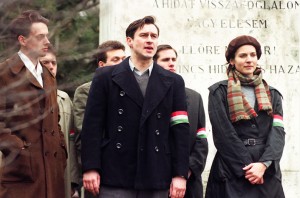 nagy bizalommal a film iránt. Kezdetben a forgatókönyv kifejezetten béna, iskolás jelleget mutat, mintha valaki egy dolgozatot írt volna - kényszer hatása alatt. Az, ahogyan Viki (Dobó Kata) a forradalom élére kerül, illetve ahogyan összetalálkozik a helyes vízilabdás sráccal, Karcsival (Fenyő Iván), akár egy harmadosztályú tévéfilm, vagy egy bábjáték része is lehetne. Szokásos magyar-filmes hiba, hogy adva van egy statisztákból álló tömeg, és egy-két darab főszereplő, akik az előtérben felmondják a szövegüket. Hamar nyilvánvalóvá válik az is, hogy egyszerűen arra megy ki a játék, hogy Viki és Karcsi szerelme úgy bontakozzon ki, hogy a hátteret a forradalom adja. Semmilyen eszköztől nem riadnak vissza Eszterhas és magyar társai, még a csókolózás hátterében elhúzó tank szerepeltetésétől sem. Ezzel együtt, sajnos, a szerelmi szálról sem tudunk túl sok jót mondani. Amikor Bánsági Ildikó (Karcsi anyja) reggel beszól Vikinek, megdöbbentő élményben lesz részünk, a film működik, a jelenet hat, a szereplők, és a szerepeik átélhetőek, valóságosak. Nem úgy, mint az, ahogyan a srác és a lány lefekszenek egymással - ez a jelenet sokkal inkább a 90-es években játszódik, mint 56-ban.