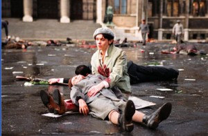 folytatva Viki és barátnője teleregény-stílusú barátnő-csacsogásával a szerelemről. Megemlíthetjük azt is, a Corvin-közben 22-én amatőr színjátszók felolvasott szöveg formájában előadott ünnepi műsora 15 perc alatt milliószor közelebb hozta a történelem ott-és-akkorát, mint Vajna egész estés filmje. Emóciók, érzelmi dózis terén Vajna verziója azonban nagyon is hatásos, sőt, annyira az, hogy megdöbbentő, magunk is meglepődtünk (ezért tartjuk jó ötletnek a megtekintését). Azt viszont, hogy ezeket az érzelmi csúcspontokat milyen eszközökkel hozták létre, jobb nem is említeni, mert ez is, mint az egész film, a legeslegostobább módon amerikai. Tankokkal és szétágyúzott lakásokkal, halomra lőtt emberekkel, patetikus zenével - és végül egy darab olyan jelenettel, amelyből Wittner Máriának sokat kellett megélnie, és amely jelenet a magyar himnusz (a himnusz) éneklését is magában foglalja. Tankokkal, mészárlással, gyilkossággal, magyar himnusszal emóciót kelteni magyarokban - hogy is mondjuk, nem túl nagy teljesítmény. Nem túl nagy teljesítmény, hiszen a '56-os forradalmunk leverése önmagában is elegendően drámai alapanyag ahhoz, hogy még egy felületes amerikai forgatókönyvíró is megható és felemelő befejezést tudjon belőle kihozni. Nem túl nagy teljesítmény, ha egy olyan történettel dolgozik a film, amelyre Tarantino azt mondta, hogy a legjobb el nem mesélt történet. Mondta ezt a Szabadság Viharával kapcsolatban, amelynek maga is producere volt, és amely már tavaly elmesélte ezt az addig el nem mesélt történetet.