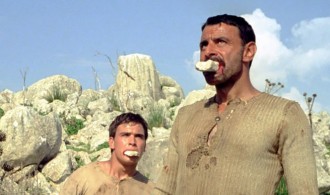 Nyitásként egy roppant hosszú jelenetet látunk, amelyben két férfi a szájában egy-egy kővel, mezítláb mászik meg egy durván szilás hegyet.