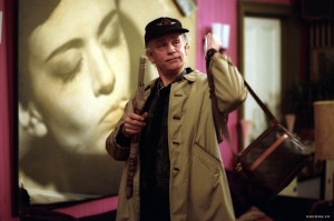 épp egy normális filmben szerepel, ám Malkovich (és a film rendezője) könyörtelenek. Képzeljük el a film legbékésebb jelenetét, amelyben Stanley egy szemetes zacskóval, műanyag papucsban, egyik zokniján hatalmas lyukkal, egy rendezetlenül begombolt műszálas rövid ujjú ingben (rajta egy hontalan-ballon kabát), és egy alul gumírozott, bokához simuló, felül buggyos szürke pamut szabadidő alsóban csoszog keresztül az úttesten. Az ember nem hisz a szemének!
