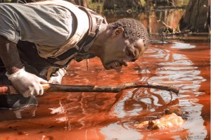 idejöttek. Fel sem tesszük már a kérdést, hogy ehhez minek kellett idejönniük, az Isten háta mögé, hogy ők maguk vegyenek mintát az átkozott folyóból, amelyben állítólag vér folyik? Hogy miért ne küldhették volna el a mintát a helyiek a maguk erejéből a járványügyieknek, vagy valami? Természetesen az is érdekes, hogy hogy lehet szerves mintákat postán feladni - de hát ilyen ez a film. Később aztán, amikor a városból a laborosok visszaküldik az eredményt (nyilván ezt is postai úton), és kiderül, hogy ez emberi vér, nem is tudjuk, mitől vagyunk annyira ledöbbenve, attól-e, hogy "úristen, vér!", vagy attól, hogy "de hiszen ez a 10 csapás egyike" vagy attól, hogy senkinek nem jut eszébe értesíteni a vöröskeresztet, hogy rengeteg vért találtak, egy egész folyónyit, siessenek, mielőtt megalvad.