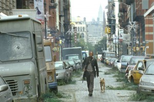 kihalt város, szétrombolva, amiben Will Smith a kutyájával mászkál egyedül. Ez a látvány tényleg ledermeszti az emberi nézőket, főként a filmbeli, kirakati bábu alakját öltő meghalt emberek néma álldogálásával együtt.
