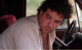 Boy Hayes (Douglas Ligon) the mid one of the three brothers lives in run down van and based his entire lifestyle on cigarette-lighter plugged household devices like a cooler, a blender or a stereo. On one sunny day he's sitting on the riverside looking at the water enjoying the peace and quiet. An ugly coloured wire comes down from the parking van down to his spot where he's having a blender in front of him on a log. It is full with ice already and only needs some more vodka (?), and the moment of truth is ready to come now: ignition! Go! - and the blender roars into gear and the next moment the stereo starts playing - moment of peace, paradise on Earth for sure frontally lit by the orange of the setting sun.