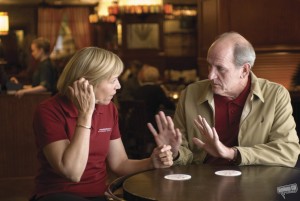 A másik főszereplő Frances McDormand, aki szintén remek színész(nő), és egyben az egyik Coen felesége is (Joel-é). McDormand egy fitneszklubban