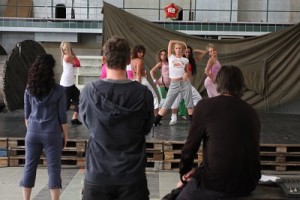 Így, bár az elején volt egy kis New York, volt egy kis Old Man's Pub, végül a filmünk egy raktárhelységben felállított színpadon játszódik. A sok körítés ellenére a világ legegyszerűbb szituját kapjuk ki a film fősztorijakként: össze kell hozni egy színdarabot, úgy, hogy közben adódnak magánéletbeli problémák, amiket le kel gyűrni :) Nem túl eredeti. Nem is túl szórakoztató. Ez azonban mind semmi ahhoz képest, hogy a színdarab egy kamu-színdarab, ami nem szól semmiről, és amit zenével és táncosnőkkel dobnak fel. A film középpontjában álló színdarab tehát kamu. Nem is tudjuk, miről szól, egy szocialista klisé rendőrökkel (East West), képzelj bele, amit akarsz. Ez a színdarab aztán végül 3 darab zenés-táncos revüben merül ki, valaki tetőtől talpig sminkben táncol és énekel a playbackre, és kész. Emiatt kell izgulnunk, hogy összejön-e, hogy siker-lesz-e, hogy a raktárhelységben felállított 10 soros nézőtéren a székeken feszengő szándékosan vegyes nézőközönség tapsol-e vagy sem :) Végül, hogy a káosz teljes legyen, a Flashdance-ből (és pl. a Streetdance Step Up 2-ből) idekopizták a vizes táncot, ami nyilván izgi lett volna itt is, ha egy táncoslány karrierjének sorsdöntő fellépését láthattuk volna, és nem egy csókolózni nem tudó zeneszerző színészlány fellépését egy színdarabban, ami nem is szól semmiről.