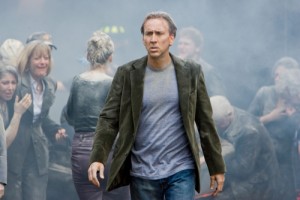 szól, amik bizonyosan bekövetkeztek, illetve be fognak következni, átcsapunk a katasztrófafilmek terepére, és szépen látunk is néhány horrorisztikus, sőt, inkább konkrétan horror-jelenetet tömegszerencsétlenségekről. Mindeközben Cage ugyanazzal a letört, lebénult arckifejezéssel csinálja végig az akciókat (nem tudjuk meg, miért ilyen lehangolt és életunt, azonkívül, hogy a felesége évekkel ezelőtt meghalt egy tragikus eseményben). Mintha ott sem lenne, úgy mozog faarccal a "kemény akciókban", amik egyébként érezhetően semmi másról nem szólnak, mint a nézők borzalmakkal való szórakoztatásáról. Aztán ezt a katasztrófa-vonalat is elkezdi továbbértelmezni a film, felbukkan egy szép nő, mint Cage lehetséges női társa, a kisfiúhoz megfelelő korú kislánnyal, de szerencsére a randizás-mellékvonalat azért kihagyjuk, helyette ufós fenyegettség, és egy sor erőltetett misztikus elem bukkan fel.