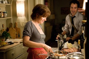 Mindenesetre az elhatározása egybe esik azzal, hogy kitalálja, az (Amerikában) nagyon elismert Julia Child régi (60-as évekbeli) szakácskönyvét kezdi el megfőzni, minden napra egy, vagy két recept-elven. Nagyon izgi, mostanában, amikor mindenki vagy utazással, vagy főzéssel próbálja elűzni az unalmát (vagy egyszerre mindkettővel), Nora Ephron bizton számíthatott rá, hogy lesz érdeklődés a filmje iránt (lett is, a 40 millió dolláros költségvetésű film már majdnem elérte a 100 milliós bevételt).