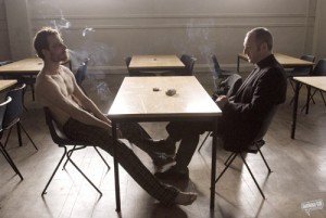 egy angollal folytatott vita ábrázolja, mert az nem is volna fair. Egy ír pap, a közösség papja az, akivel Bobby Sands (Michael Fassbender) megbeszéli, hogy éhségsztrájkot kezd - mindhalálig (ez már abban a pillanatban világos volt, hogy az első néhány sztrájkoló meg kell, hogy haljon, Bobby Sands pedig az első volt a sorban). A film középpontja Bobby Sands és a lelkész nagy párbeszéde, vitája. Ez tökéletesen van megírva és eljátszva is, olyan, mint egy briliáns színdarab, egy tökéletes dramaturgiájú párbeszéd, amit ha ezerszer folytatnának le, ezredikre is ugyanígy zajlana, annyira tökéletes pont így.