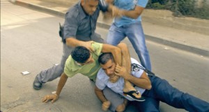 Később, néhány fejezettel később ugyanezt már egészen másképp fogjuk látni. A hajnal 5-kor bekopogó izraeliek rendőrök, és drogügyben nyomoznak. Látjuk majd, hogy az arab srácok miért nem értik, hogy nem engedik be őket a tett színhelyre, és látjuk, hogy ez milyen érzéseket vált ki belőlük. Több mindent is látunk idővel - de ezeket a fordulatokat nem fogjuk most lelőni (ugyanakkor fontos megjegyezni, hogy általában nem az ellentéte derül ki valaminek, hanem csak jobban, mélyebben látjuk az adott helyzetet). Különös, különleges élmény látnunk a "drogdílert" táncolni az étterem konyhájában. Előadja a jófejet. Semmi szimpátiát nem érzünk iránta - mert drogdíler. A drogdílert egyébként (Binj) a film egyik rendezője, Scandar Copti alakítja, és a filmben egy izraeli lányba szerelmes.