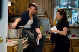 Egy olyan házban laknak, ami dohos, penészes, és ettől a felesége eléggé beteg. Rengeteg gyerekük van, köztük 16-18 évesek is. Miért? Mert keresztények. A feleség most ikrekkel terhes, és Ethan Hawke már totál ki van akadva, hogy nem tudja hova tenni az új gyerekeket - ez azért emlékezetes jelenet, mert ekkor nevetünk először és utoljára a filmen, amikor a barátja azt mondja, hogy de hiszen a gyerekek először még kicsik, nem? Alig foglalnak helyet, egy fiókban elférnek, később meg majd kialakul.