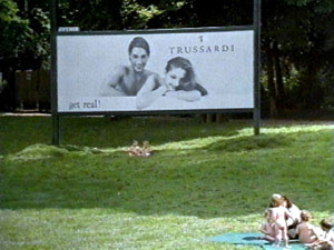 mint korábban (a film előtt). A feliratok alatt látható divatbemutató felvételek egy meghaladott, múltbéli korszak képei, és ezt nem csak most, a cikk írásának idején, 2002-ben lehetett így érezni, hanem már 1995-ben is. Ami az emberben lejátszódik, az annak felel meg, mint amit a film végén látunk. Milo, az ellenszenves fotós, óriásposzter-fotót készít. A képen zöld pázsit, egy pár hónapos bébi láthatóak, és a háttérben egy óriásposzter, rajta egy felirattal: "get real!" (pl. válts valódira). Poszter a poszterben, a keretek kitágulnak, és bejön a friss zöld gyep. Ugyanez a film, divat a filmben, a keretek kitágulnak, bejön az élet, és mi átkerülünk egy Aliz-tükör másik oldalára, mostantól a divatot nem kívülről nézzük, orrunkat a kirakatüvegre tapasztva, hanem belülről, természetesként érzékelve azt, int a minket körülvevő levegőt.