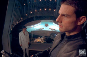 legalábbis kritikus árnyat tud vetni a filmekre, amikben játszik (vagy fordítva), gondoljunk csak a borzasztó Mission Impossible 2.-re, a mesterkélt Tágra Zárt Szemekre, vagy a nézhetetlen Vanília Égboltra. Cruise utóbbi időkbeli nem kifejezett sikersorozata a Különvélemény-nyel kapcsolatban is fenntartásokat hozott, de ezt a film lassacskán, az idő előrehaladtával szépen eloszlatta. Cruise ugyanúgy játszott ebben a filmben is, mint ahogy megszokhattuk tőle, semmilyen új formulát nem dobott be, mégis, egyszerűen jó volt Anderton szerepében. Nem csinált semmi különöset, és talán épp ezért lett jó, azért, mert elérte, hogy az egész film alatt szinte észrevétlenül simult bele a főszereplő bőrébe, úgy, hogy végig nem tudatosodott, hogy most egy Tom Cruise-főszereplésű filmet látunk. Egyébként a karaktere helyenként erősen emlékeztetett az Időzsaru c. Van Damme-film főszerepére, a titkosügynökére, aki a munkája ellenére nem tudja megakadályozni a családja elvesztését, és aki minden szabad percét azzal tölti, hogy régi felvételeket nézeget a fiáról és a feleségéről. Minden film örülhet, ha kicsit az Időzsarura hasonlít (nagyon jó film volt), viszont annál kevesebb, ha a Vanília Égboltra emlékeztet.