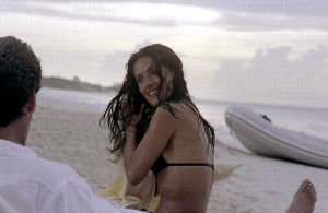 a rablók és gyilkosok szeretnének kikötni - minden film végén -, a trópusokra. Egész nap csak a napfény, a koktélok, a medence, a víz és a dögunalom. Tetejébe mindennek nemcsak mi unatkozunk, de ők is. Erről van szó, ez az elmésen kitalált sztori lényege, hogy unatkoznak. Unatkoznak, a nő (Selma Hayek) párszor levetkőzik, párszor rátekeredik kedvenc Bond Ügynökünkre, aki most, ugye, nyugdíjas napjait éli, és ezzel ki is fújt. A nő utálná, ha az ex-ügynök még egyszer ellopna valamit, az ex-ügynök folyton megígéri, hogy nem is fogja ezt tenni, mi pedig izgulhatunk - hogy vajon holnap mi lesz az ebéd a menzán, vagy hogy ma még hány centi hó esik Budapesten.